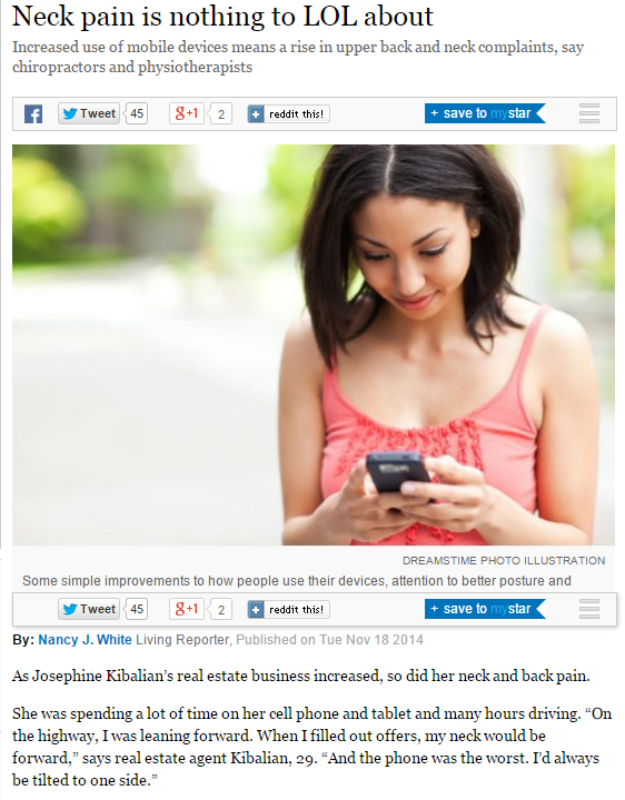 (Source: “Neck pain is nothing to LOL about,” The Star, November 18, 2014).